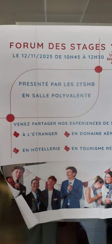 Mercredi 12 novembre, les élèves « encordés » de Terminale Métiers de l’Accueil et du Tourisme ont participé à une journée d’immersion en BTS Tourisme au lycée hôtelier de Gascogne à Talence.